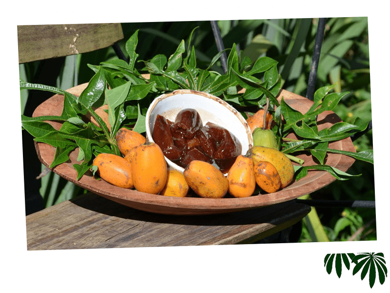 Do fruto do Jaracatiá, se extrai um látex (leite) muito forte, que precisa ser retirado antes da ingestão do fruto.